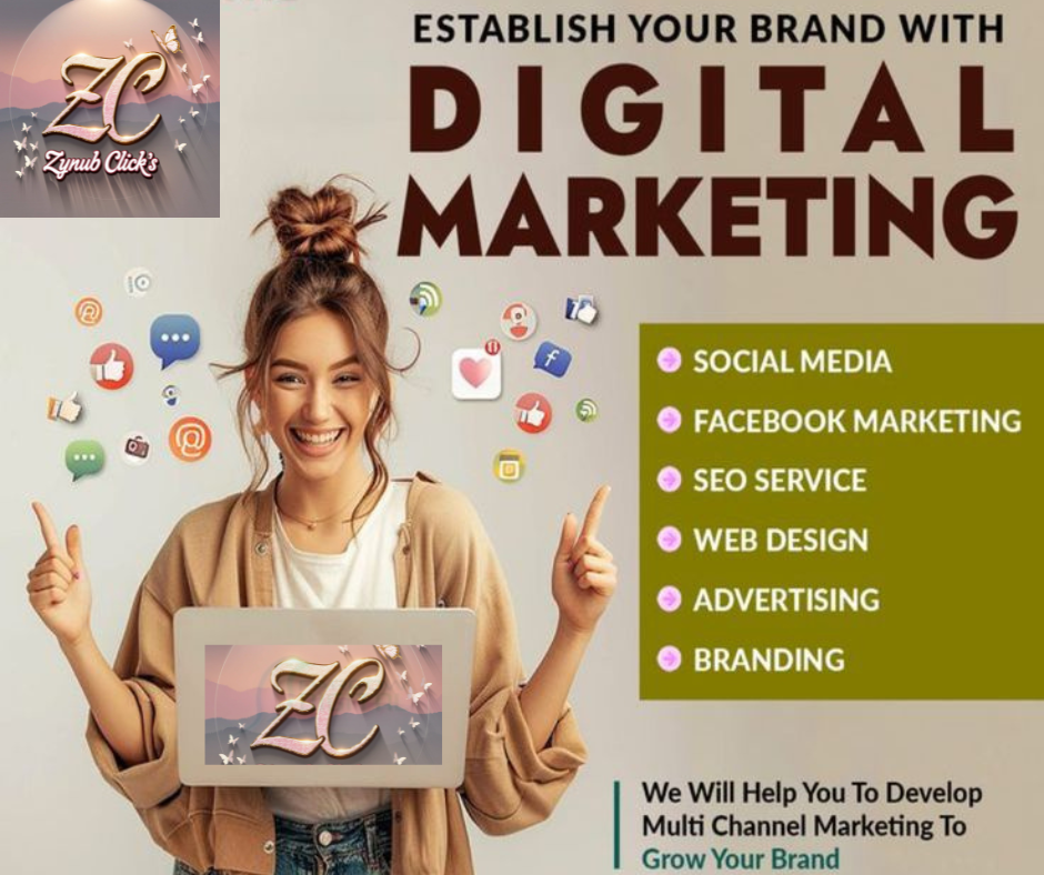 At Zynub Click’s, we believe that digital marketing is the cornerstone of any successful business in today’s online-driven world. Whether you’re just starting out or looking to take your existing brand to the next level, our comprehensive services are designed to meet your unique needs. From targeted social media strategies to search engine optimization and engaging web design, we offer tailored solutions that ensure your brand stands out in the crowded digital space. Our team of experts is dedicated to helping you grow and succeed through innovative and proven digital marketing tactics that drive results. With a focus on multi-channel marketing, we work tirelessly to build your brand’s presence, increase your visibility, and ultimately drive more conversions.